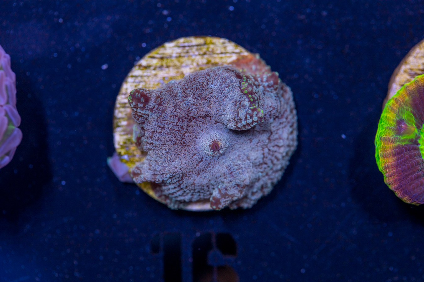 Corals placed at the bottom of the tank thrive in lower flow and partially shaded areas. They can be placed on your sand bed or perhaps under a ledge.  We recommend that they get some light, but don’t need as much as other corals to live and grow.