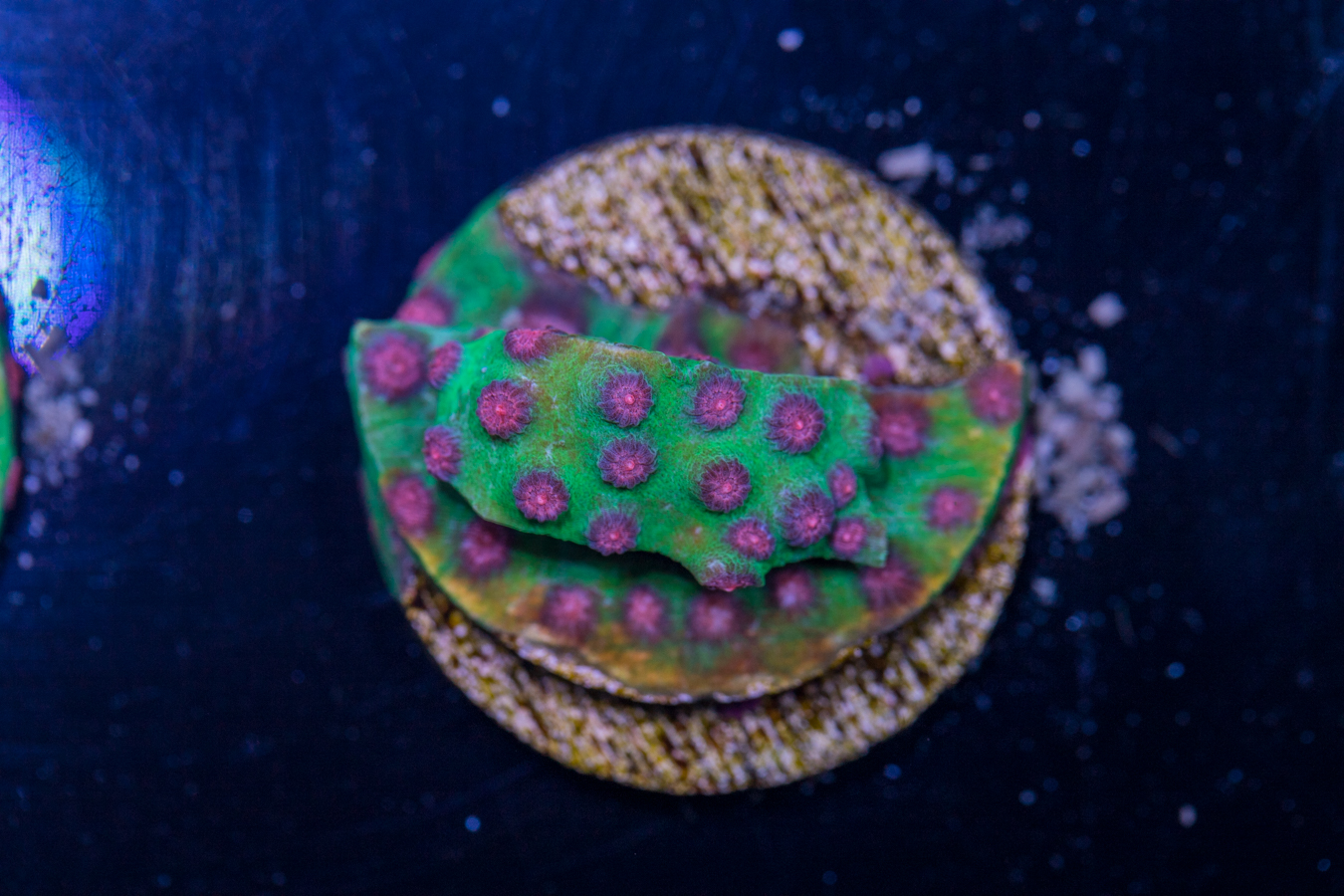 Corals placed at the bottom of the tank thrive in lower flow and partially shaded areas. They can be placed on your sand bed or perhaps under a ledge.  We recommend that they get some light, but don’t need as much as other corals to live and grow.
