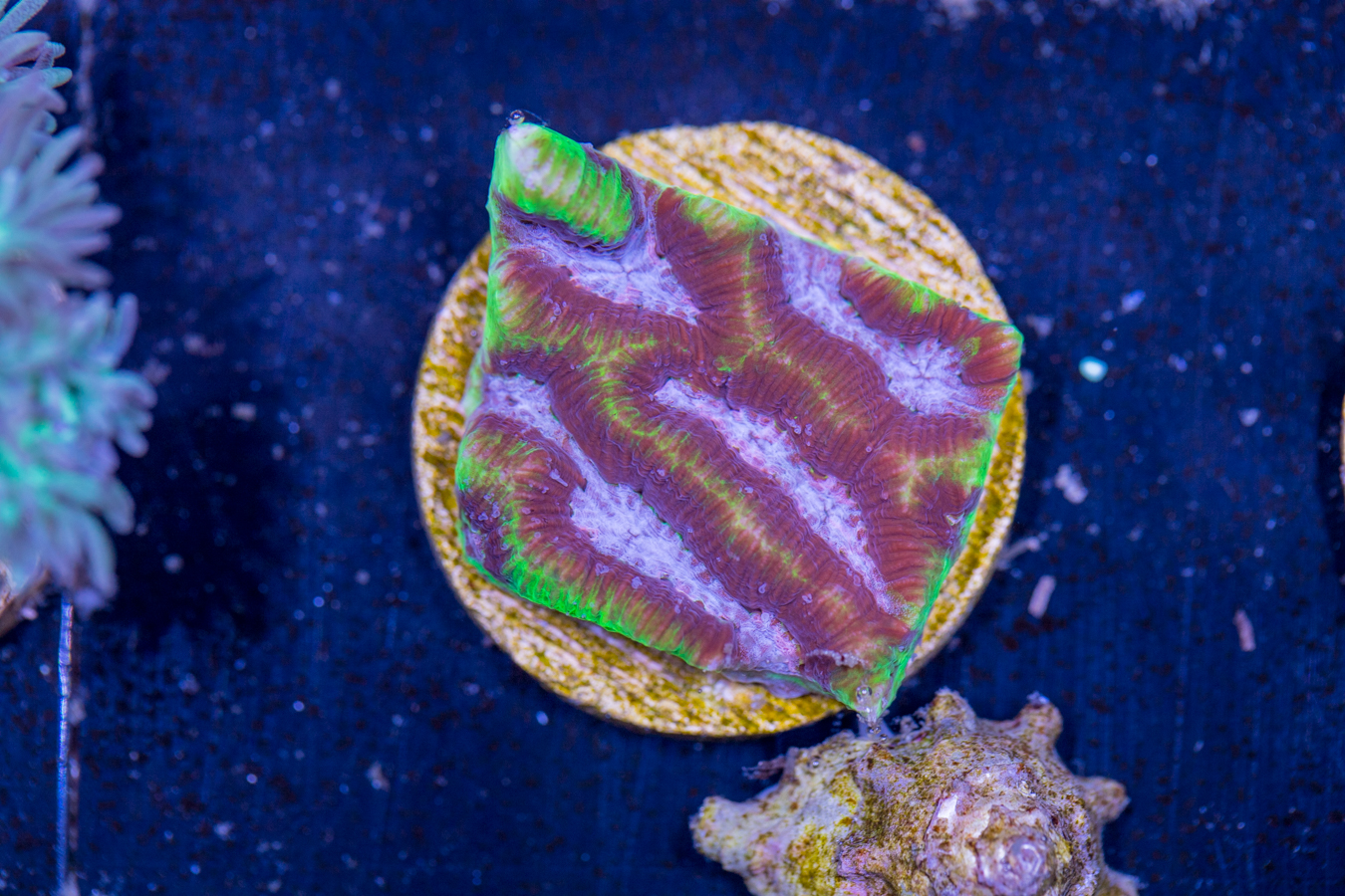 Corals placed at the bottom of the tank thrive in lower flow and partially shaded areas. They can be placed on your sand bed or perhaps under a ledge.  We recommend that they get some light, but don’t need as much as other corals to live and grow.