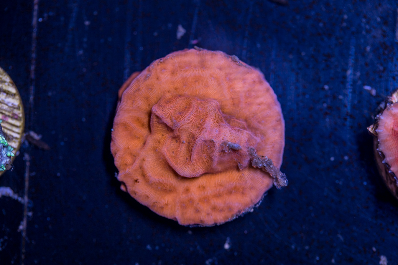 Corals placed at the bottom of the tank thrive in lower flow and partially shaded areas. They can be placed on your sand bed or perhaps under a ledge.  We recommend that they get some light, but don’t need as much as other corals to live and grow.