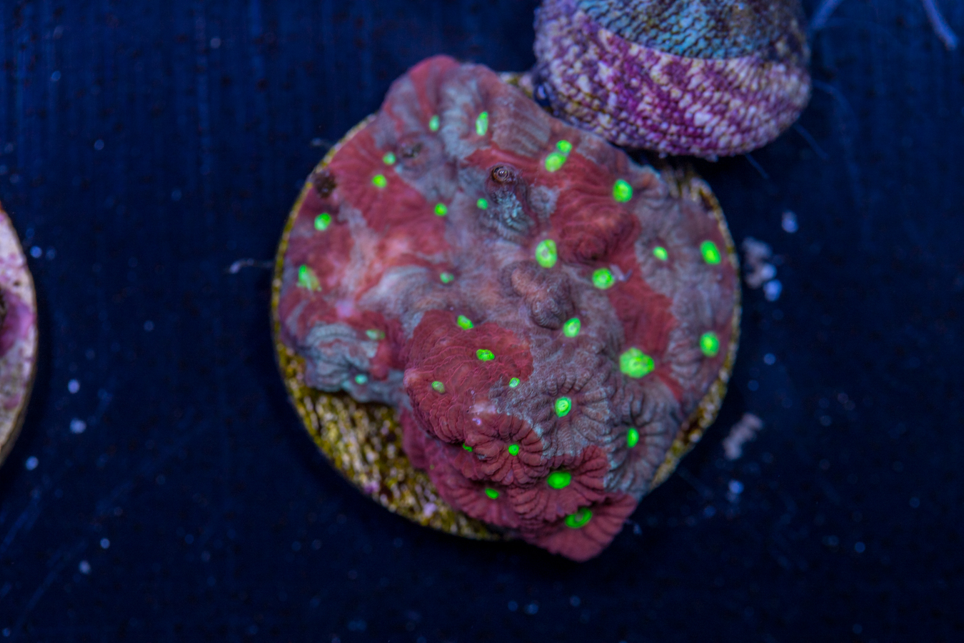 Corals placed at the bottom of the tank thrive in lower flow and partially shaded areas. They can be placed on your sand bed or perhaps under a ledge.  We recommend that they get some light, but don’t need as much as other corals to live and grow.