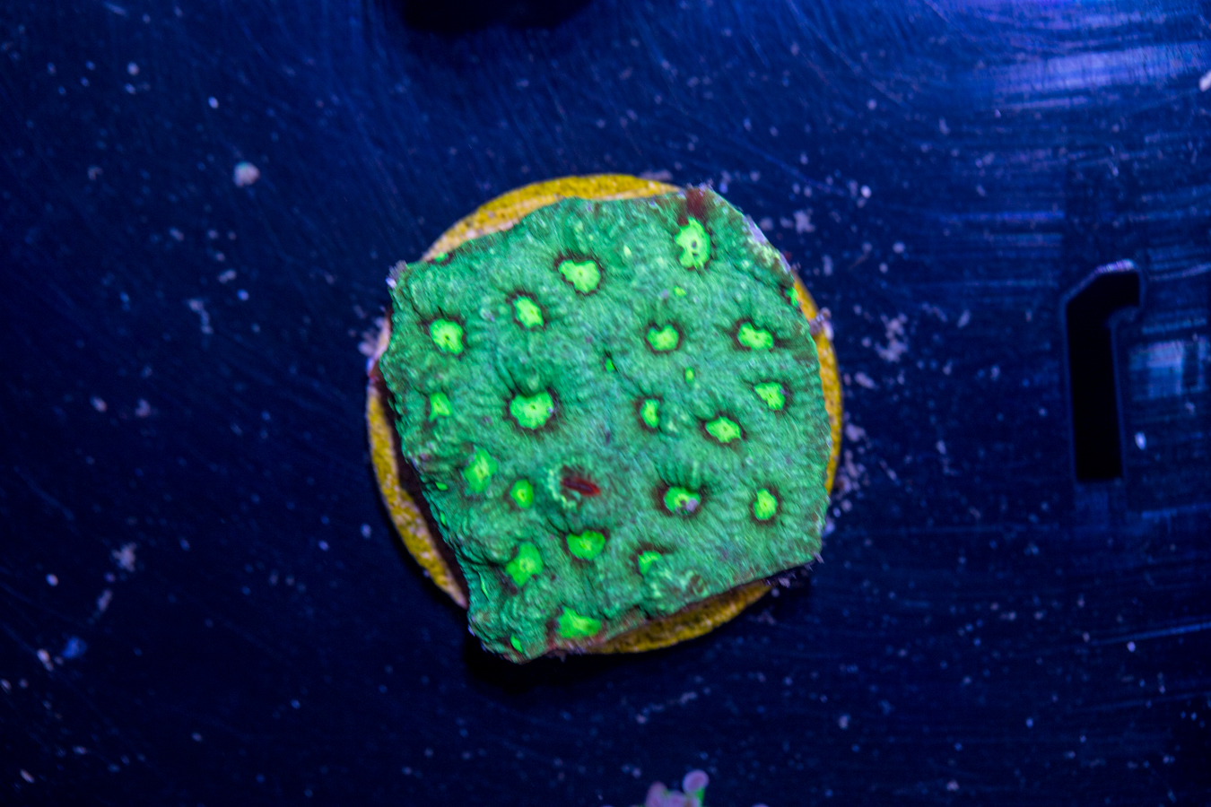 Corals placed at the bottom of the tank thrive in lower flow and partially shaded areas. They can be placed on your sand bed or perhaps under a ledge.  We recommend that they get some light, but don’t need as much as other corals to live and grow.