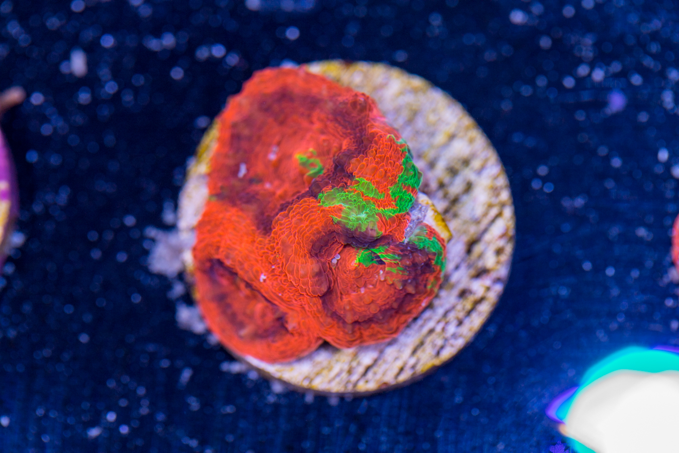 Corals placed at the bottom of the tank thrive in lower flow and partially shaded areas. They can be placed on your sand bed or perhaps under a ledge. We recommend that they get some light, but don’t need as much as other corals to live and grow.