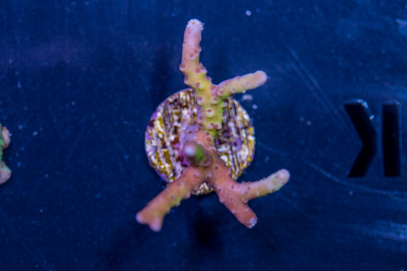 Corals placed at the bottom of the tank thrive in lower flow and partially shaded areas. They can be placed on your sand bed or perhaps under a ledge.  We recommend that they get some light, but don’t need as much as other corals to live and grow.