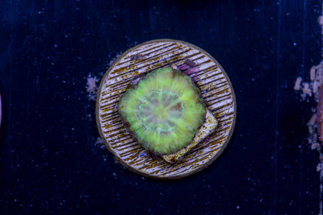 Corals placed at the bottom of the tank thrive in lower flow and partially shaded areas. They can be placed on your sand bed or perhaps under a ledge.  We recommend that they get some light, but don’t need as much as other corals to live and grow.