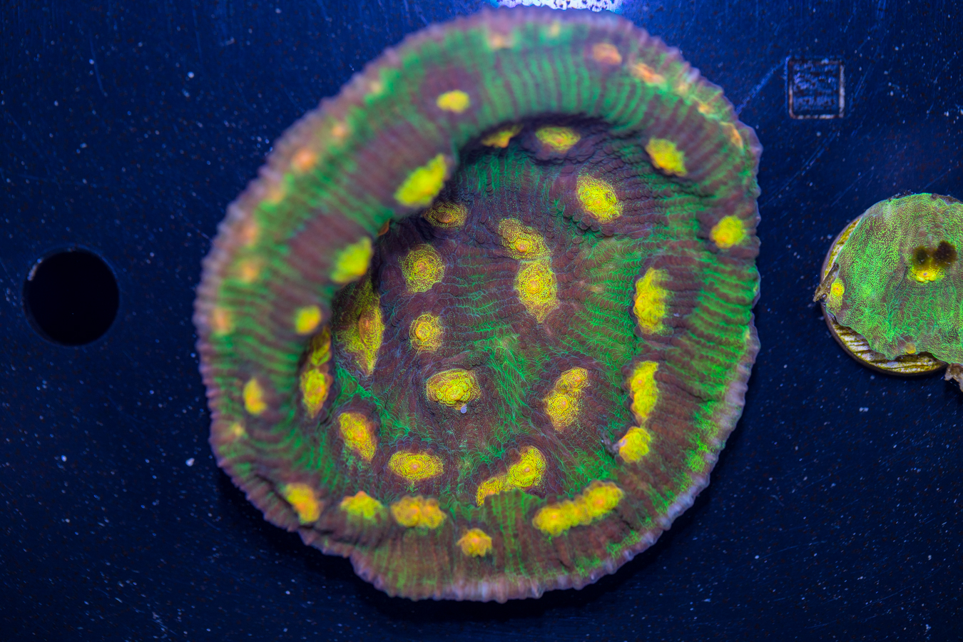 Corals placed at the bottom of the tank thrive in lower flow and partially shaded areas. They can be placed on your sand bed or perhaps under a ledge. We recommend that they get some light, but don’t need as much as other corals to live and grow.