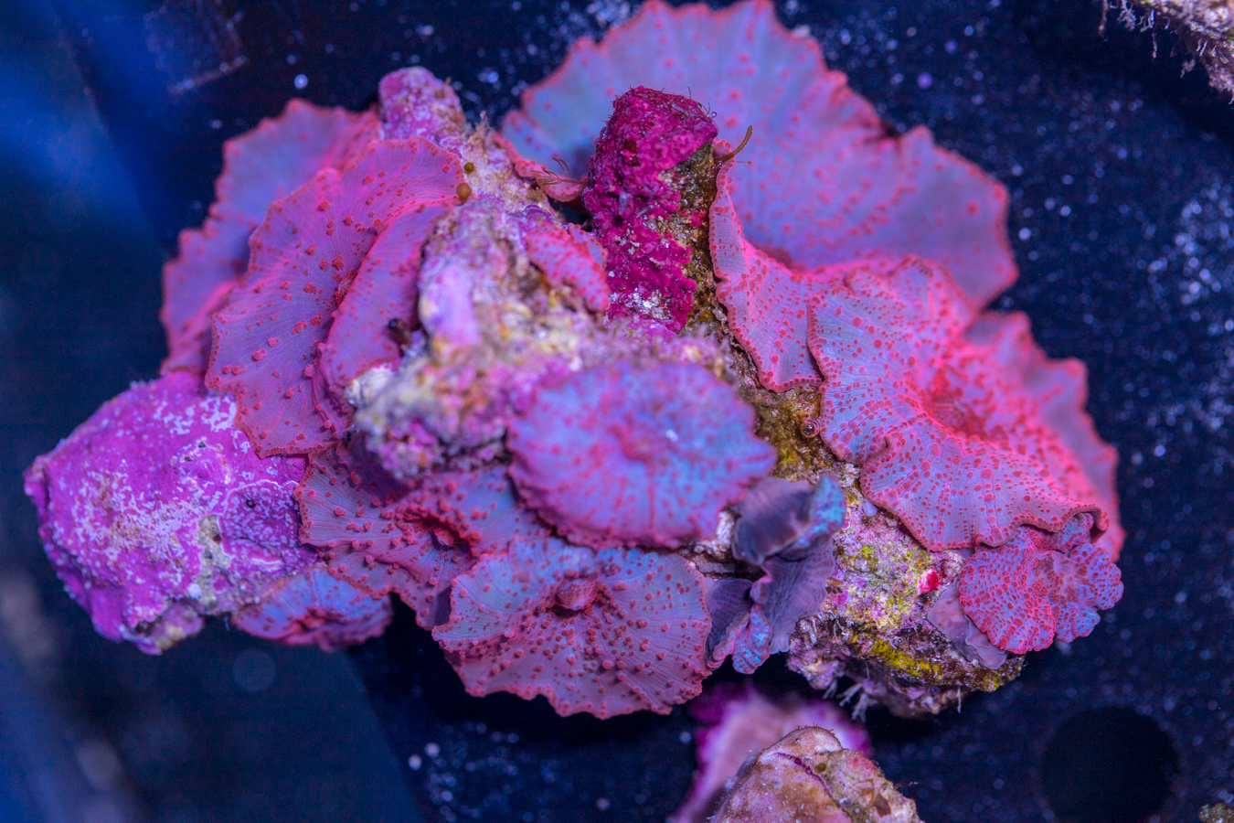 Corals placed at the bottom of the tank thrive in lower flow and partially shaded areas. They can be placed on your sand bed or perhaps under a ledge. We recommend that they get some light, but don’t need as much as other corals to live and grow.