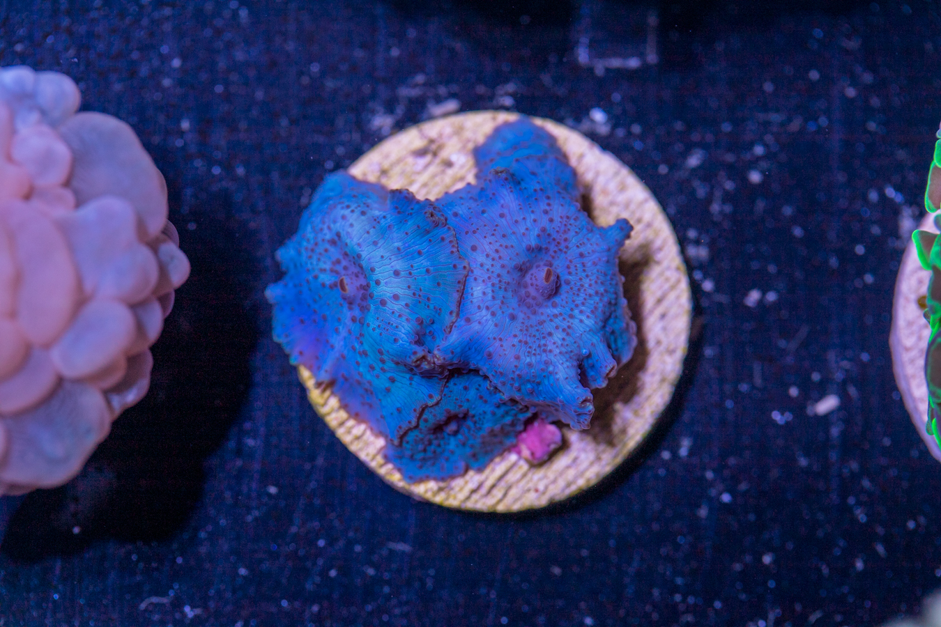Corals placed at the bottom of the tank thrive in lower flow and partially shaded areas. They can be placed on your sand bed or perhaps under a ledge. We recommend that they get some light, but don’t need as much as other corals to live and grow.