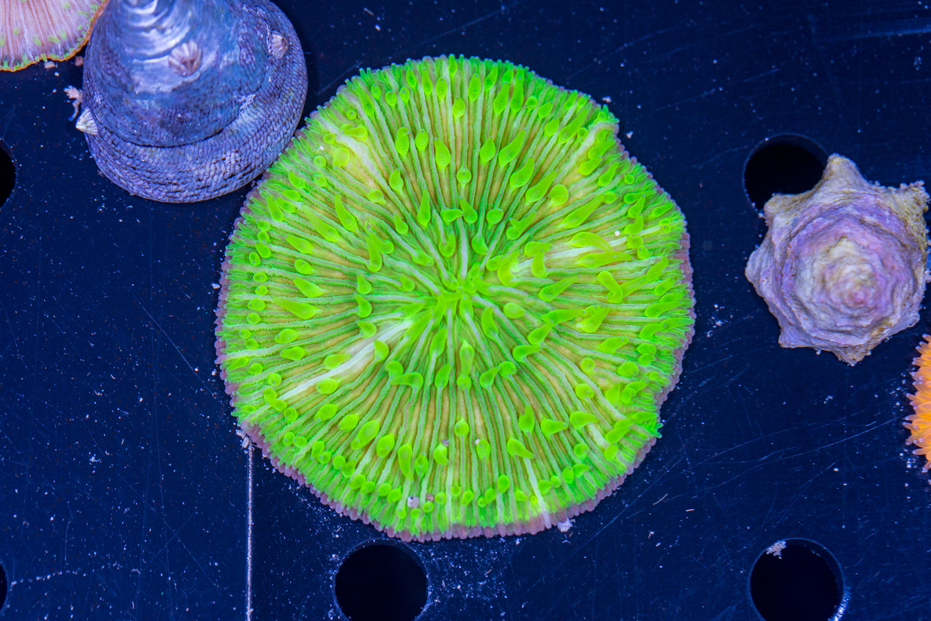 Species within this category do not pose a real threat towards neighboring corals, except for the possibility of over-growing them. “Peaceful” corals do not possess any stinging cells, and do not release chemicals to ward off their neighbours. However, under the right conditions, they can grow rapidly and block light from neighbouring corals. This situation is often very easy to rectify simply by trimming or fragging the coral back and allowing room for its neighbours.