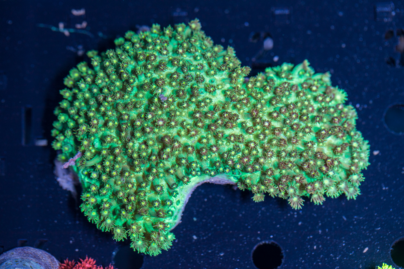 Species within this category do not pose a real threat towards neighboring corals, except for the possibility of over-growing them. “Peaceful” corals do not possess any stinging cells, and do not release chemicals to ward off their neighbours. However, under the right conditions, they can grow rapidly and block light from neighbouring corals. This situation is often very easy to rectify simply by trimming or fragging the coral back and allowing room for its neighbours.