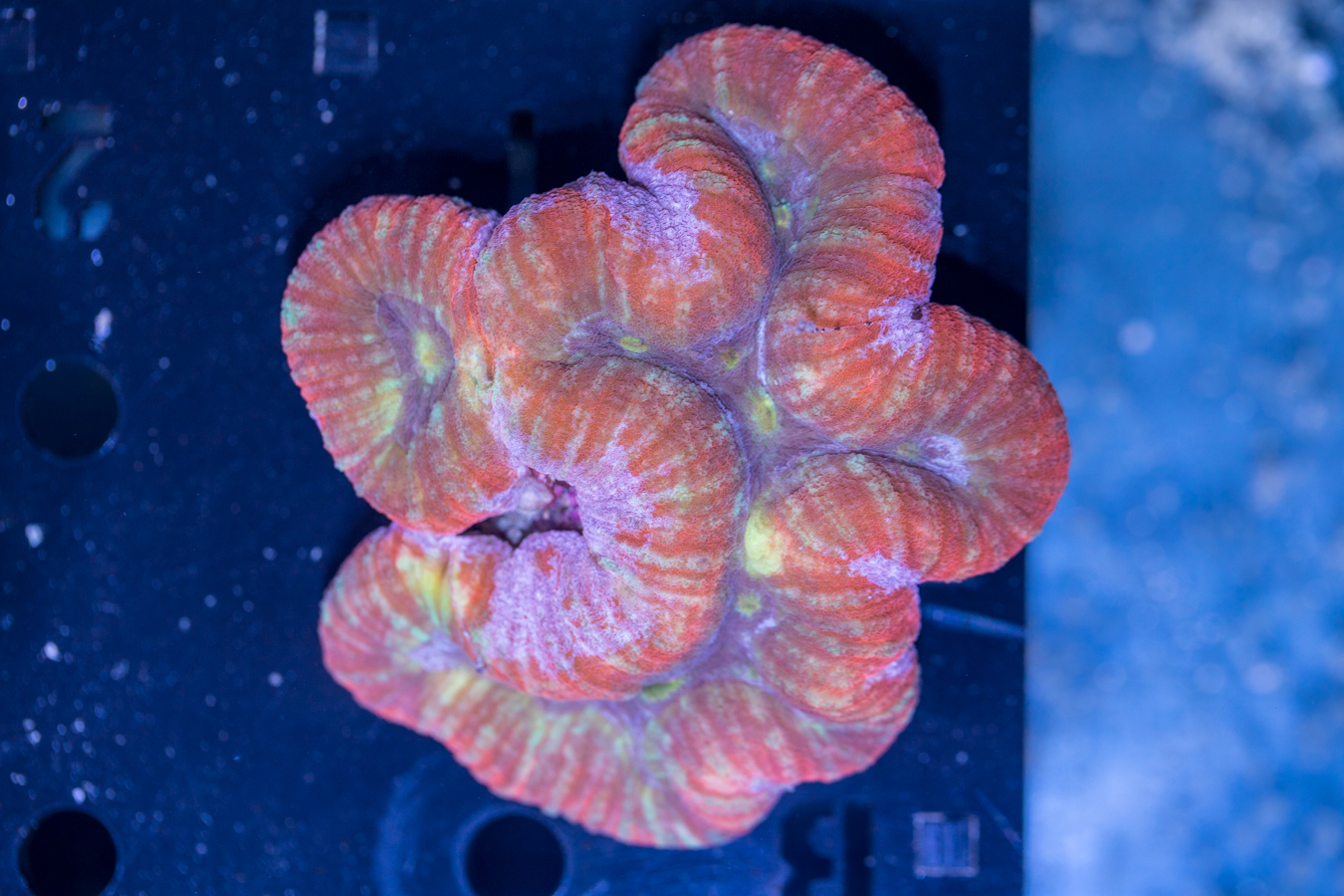 Corals placed at the bottom of the tank thrive in lower flow and partially shaded areas. They can be placed on your sand bed or perhaps under a ledge.  We recommend that they get some light, but don’t need as much as other corals to live and grow.