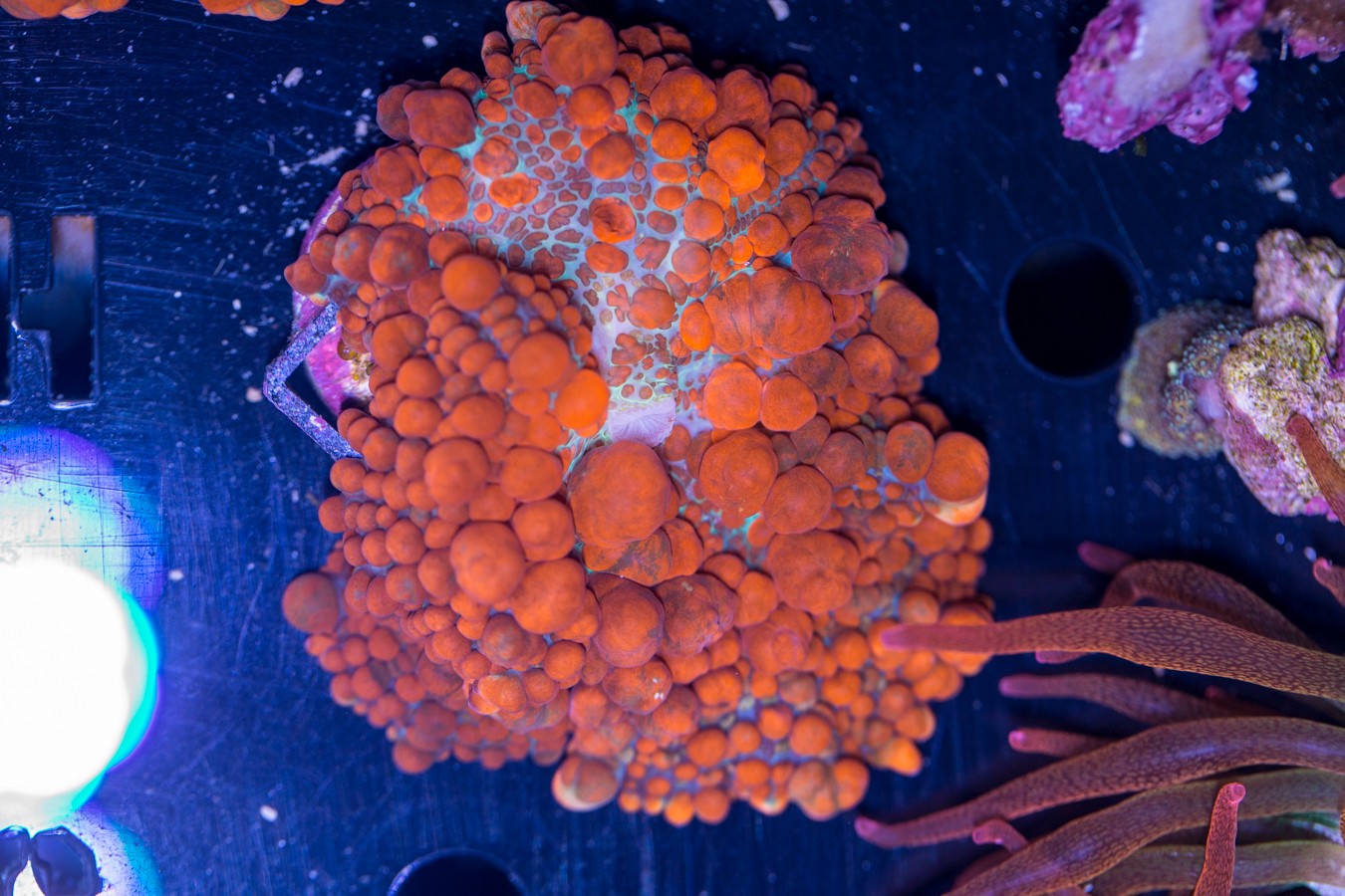 Corals placed at the bottom of the tank thrive in lower flow and partially shaded areas. They can be placed on your sand bed or perhaps under a ledge. We recommend that they get some light, but don’t need as much as other corals to live and grow.