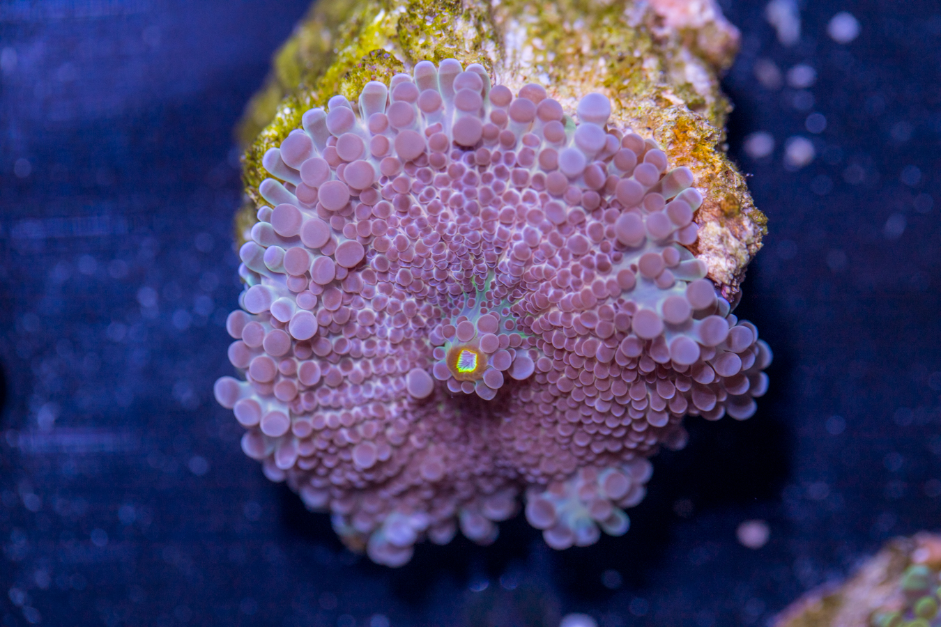 Corals placed at the bottom of the tank thrive in lower flow and partially shaded areas. They can be placed on your sand bed or perhaps under a ledge.  We recommend that they get some light, but don’t need as much as other corals to live and grow.
