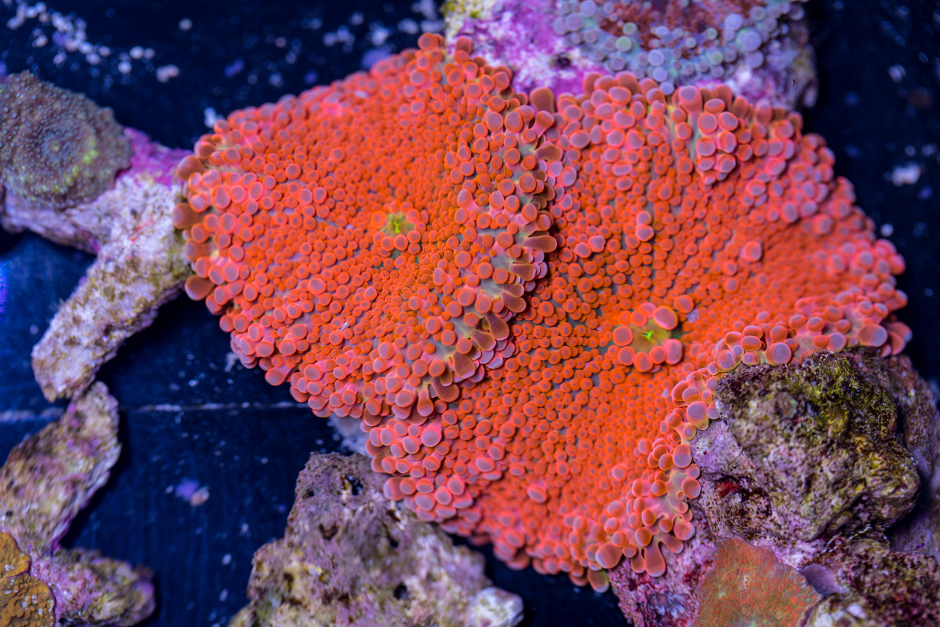 Corals placed at the bottom of the tank thrive in lower flow and partially shaded areas. They can be placed on your sand bed or perhaps under a ledge. We recommend that they get some light, but don’t need as much as other corals to live and grow.