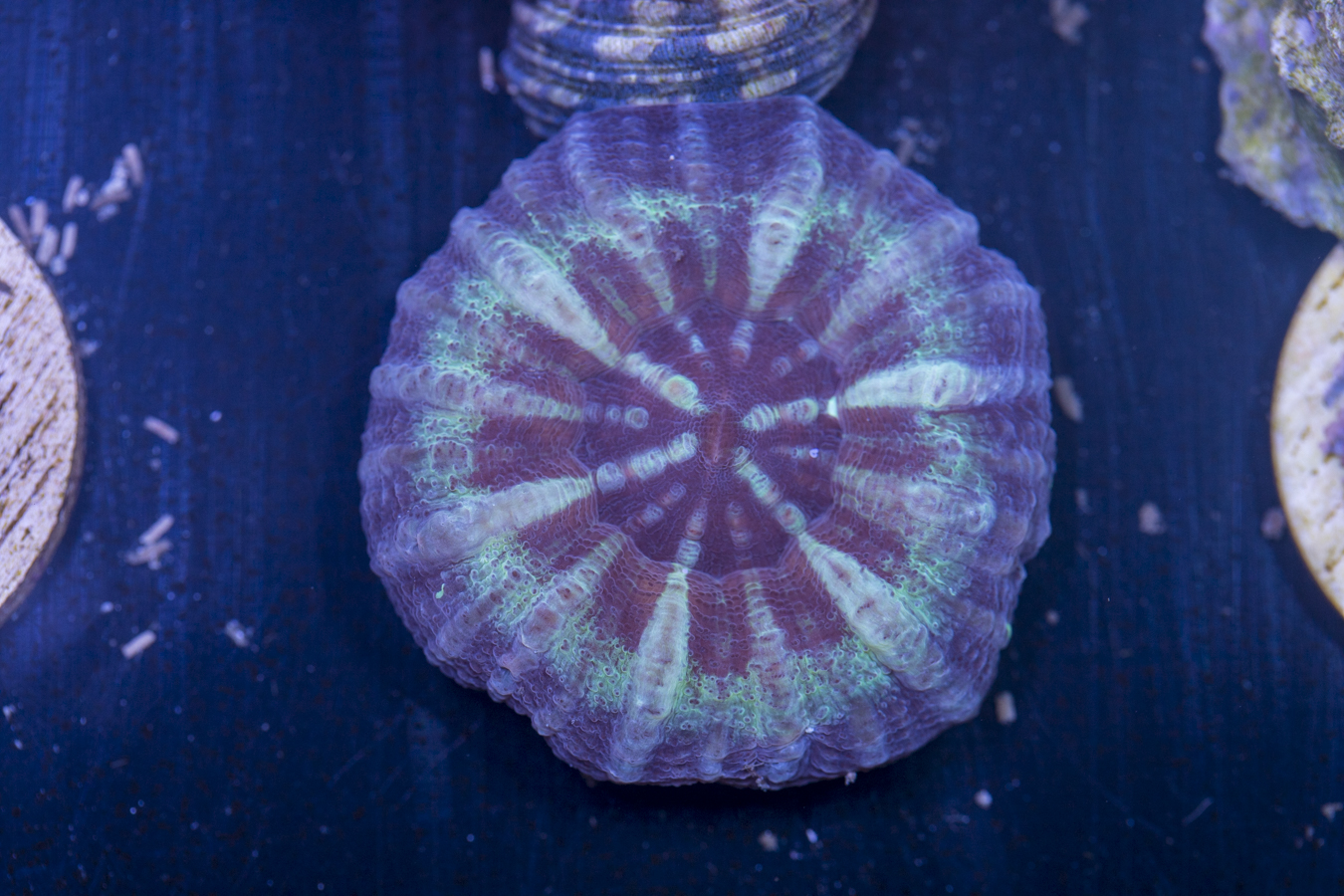 Corals placed at the bottom of the tank thrive in lower flow and partially shaded areas. They can be placed on your sand bed or perhaps under a ledge.  We recommend that they get some light, but don’t need as much as other corals to live and grow.
