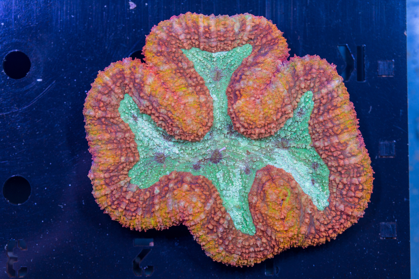 Corals placed at the bottom of the tank thrive in lower flow and partially shaded areas. They can be placed on your sand bed or perhaps under a ledge. We recommend that they get some light, but don’t need as much as other corals to live and grow.
