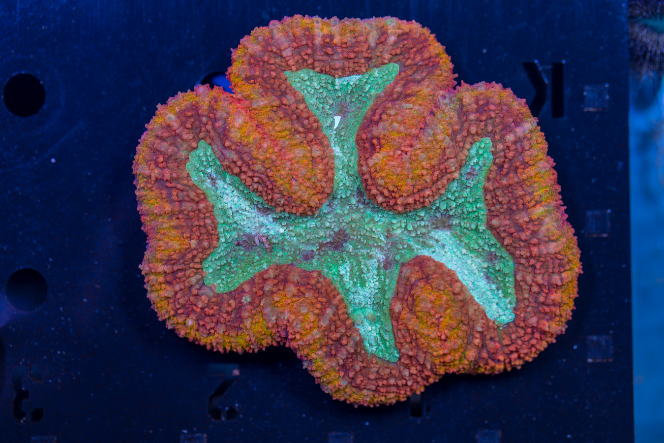 Corals placed at the bottom of the tank thrive in lower flow and partially shaded areas. They can be placed on your sand bed or perhaps under a ledge. We recommend that they get some light, but don’t need as much as other corals to live and grow.