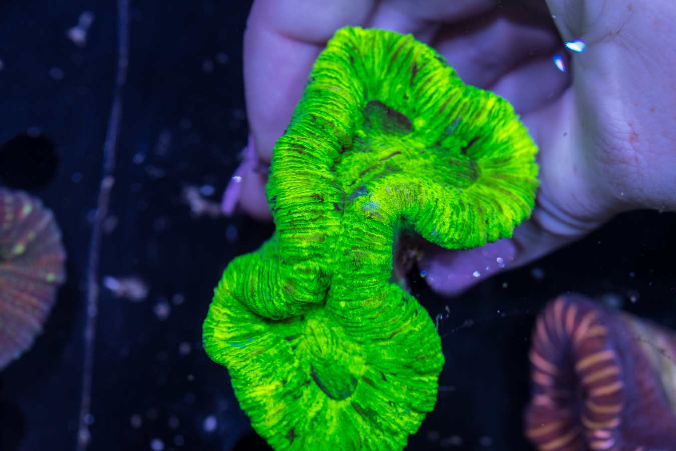 Species within this category do not pose a real threat towards neighboring corals, except for the possibility of over-growing them. “Peaceful” corals do not possess any stinging cells, and do not release chemicals to ward off their neighbours. However, under the right conditions, they can grow rapidly and block light from neighbouring corals. This situation is often very easy to rectify simply by trimming or fragging the coral back and allowing room for its neighbours.