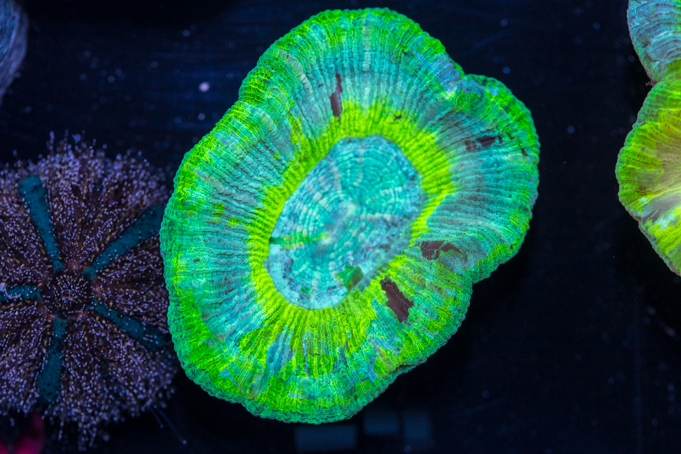 Within this category of dominance are species that possess a potent sting or chemical toxin that will affect their neighbouring corals. These species are still considered “Semi-Aggressive” since they will not reach out to great lengths to pose an offensive attack. When placing Semi-Aggressive species in your aquarium, be sure to take into account the fully expanded size of the coral and provide extra room for growth. Continue to monitor the reaction of neighbouring species and be prepared to move one or the other if there proves to be incompatibilities.