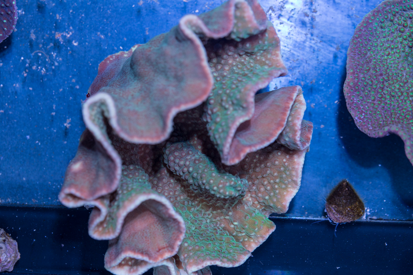 Corals placed at the bottom of the tank thrive in lower flow and partially shaded areas. They can be placed on your sand bed or perhaps under a ledge. We recommend that they get some light, but don’t need as much as other corals to live and grow.